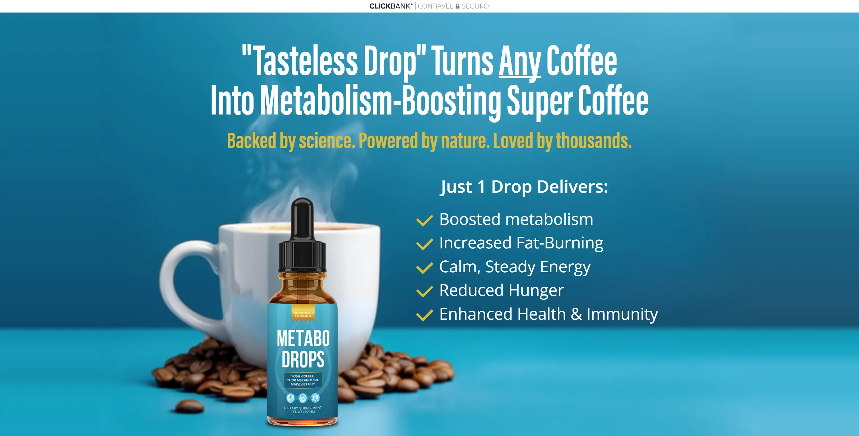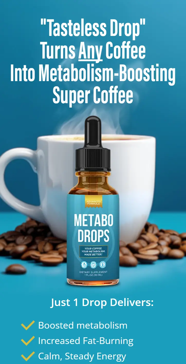 Metabo Drops™ is marketed as a tasteless liquid “drop” you add to coffee. The official site describes it as supporting metabolism, appetite control, and calm energy. For current pricing, bundles, shipping, guarantee terms, and full details, use the official site link below.